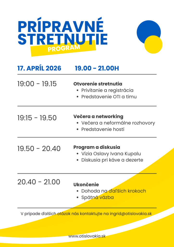 Radi by sme Vás pozvali na neformálne prípravné stretnutie – spoločnú večeru, ktoré bude priestorom na: